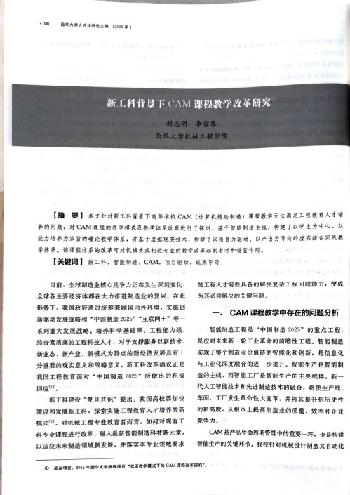 封志明, 李雪琴. 新工科背景下CAM课程教学改革研究[J]. 西华大学人才培养论文集,2020(12):38-42.